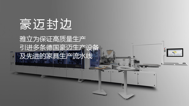 雅立為(wèi)保證高(gāo)質量生(shēng)産 引進多(duō)條德國(guó)豪邁生(shēng)産設備及先進的(de)家(jiā)具生(shēng)産流水(shuǐ)線